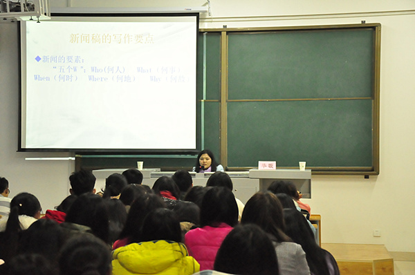 为了更好的开展团学活动,提高学生干部的宣传工作效率,加强他们对新闻稿,微博,展板等的创作能力,毕璇老师精心准备了本次培训内容。毕璇老师强调要做好团的宣传员工作,希望大家珍惜这次培训机会,集中精力、静心学习,深入思考、学以致用,共同把学校团系统宣传工作做出影响力,为学校营造良好的网络社会环境!她用简洁明了的语言重点进行了网站基本信息方面的培训和讲解了网站新闻稿件的写作技巧,每讲一个知识面相应的就列举出一个实例供大家参考。她告诉大家新闻稿的主体部分,叙事要分清主次,井然有序,要注意新闻稿的时效性、及时性、真实性,且新闻稿的语言要简明扼要,她还建议大家写新闻稿时以突发事件的新奇、独特之处为切入点写作,更加容易引起读者兴趣。随后时间里,毕璇老师还为大家介绍了展板、微博等相关内容。