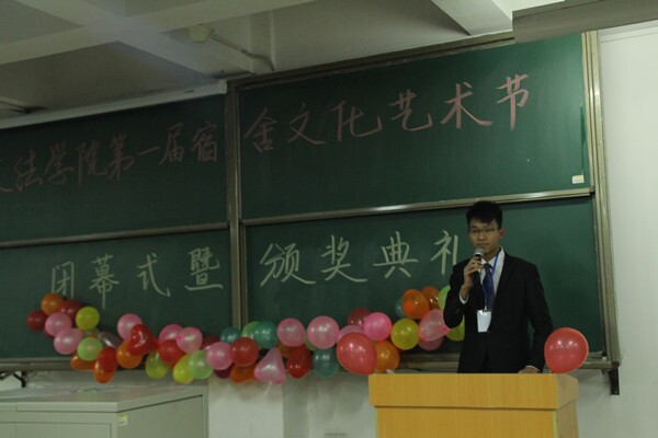 为了进一步推进宿舍文明建设,营造温馨舒适的宿舍环境,文法学院举办了以“激情青春 风采无限 温馨宿舍 你我共建”为主题的校园宿舍文化艺术节。文法学院于2014年11月2日晚上7:00在B楼200室举行了该活动的闭幕仪式。