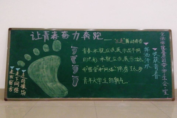 三走,是今年年初共青团中央、全国学联联合教育部、国家体育总局开展的大学生走下网络、走出宿舍、走向操场主题群众性课外体育锻炼活动。为了响应这种活动,文法学院于2014年11月17日晚7:00对各班进行了三走活动的宣传。