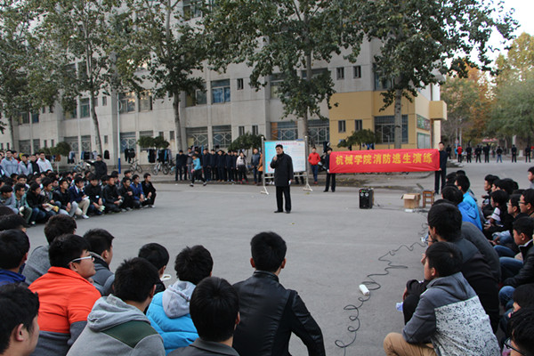 为进一步贯彻落实《山东英才学院2014年消防安全月活动实施方案》文件精神,增强广大学生消防安全意识,提高实战逃生演练技能。2014年11月12日下午17时,机械学院在1号楼学生公寓,进行了消防安全逃生演练。机械学院副院长孔祥泉、行政秘书姚宏、宗云超、全体辅导员老师以及2014级全体新生一起参与了此次演练。