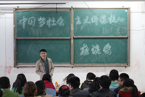 会议开始商学院学生会副主席崔鹏程提出自己对中国梦社会主义核心价值观的三个认识。第一是社会主义核心价值观构成中国梦不可或缺的价值内核;第二是实现中国梦离不开社会主义核心价值观的思想保证;第三是中国梦从理想变成现实的过程同时也是社会主义核心价值观一步步落地生根的过程。会议上学生代表积极提出自己的疑问。