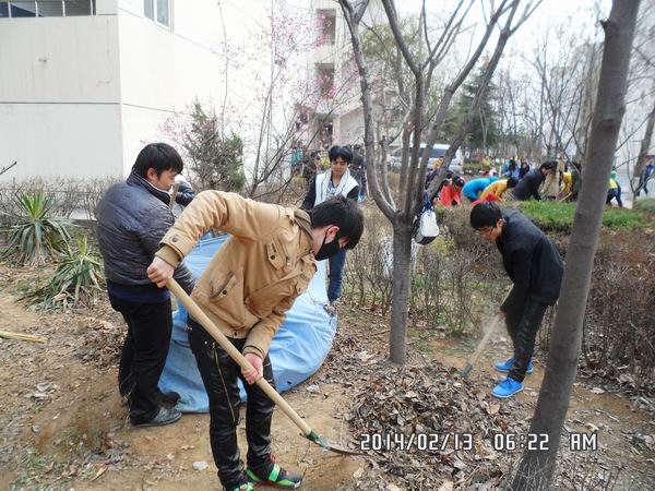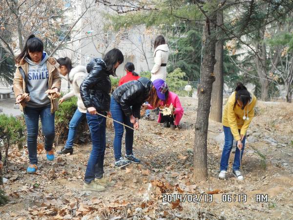 为了营造一个整洁优美,文明卫生的校园环境,3月12日,外国语与国际交流学院80余名学生,对所管辖D楼和大学生活动中心、阶梯教室E楼周边及生动花园开展了校园白色垃圾、落叶等集中清理志愿行动。