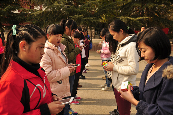 当天的比赛项目是我国传统的娱乐运动踢毽子和技术含量极高的魔方。踢毽子的同学脚上功夫了得,个个如有神助、屡创佳绩,表现出极高的踢毽子水平。同时,场边挨着的是进行魔方比赛的同学,他们飞快地舞动手指运转三阶魔方,让观众看得眼花缭乱的同时又赞叹他们的高超技艺。