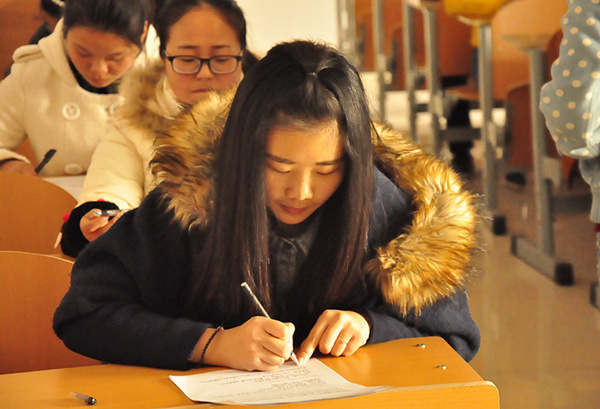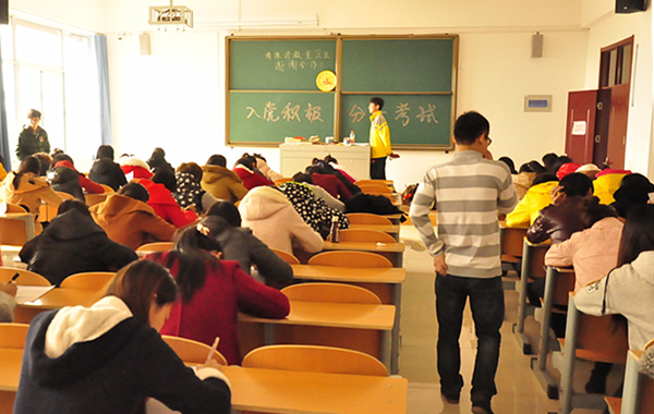 为了检验入党积极分子的培训效果,2014年11月9日12点,学前教育学院在实训教学楼6002开展了入党积极分子培训考试。监考人员为学前教育学院基层团委、学生会各常委。