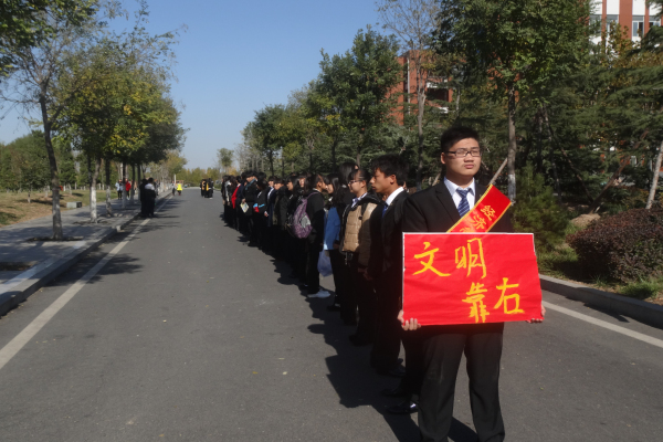 为了进一步使社会主义核心价值观深入人心,通过实际行动带动身边同学们的安全意识及文明素质,提高同学们的自我保护意识,经济管理学院基层团委办公室于 2014年11月12日举办了“文明靠右行”活动。本次活动有:组织部、宣传部、权益部、体育部、外联部共同开展。基层团委、学生会6个部门的所有干事参与其中。