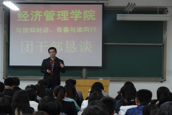 青春有信仰,从此不一样。信仰助青春,人生有方向。2014年3月17日,经济管理学院基层团委、学生会于中午12点在B-102教室举办了以“与信仰对话,青春与谁同行”为主题的团干部恳谈会议。经济管理学院基层团委、学生会全体成员参与本次恳谈。田萌春担任主讲。