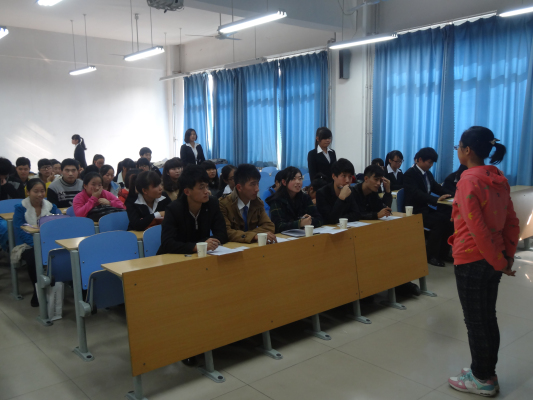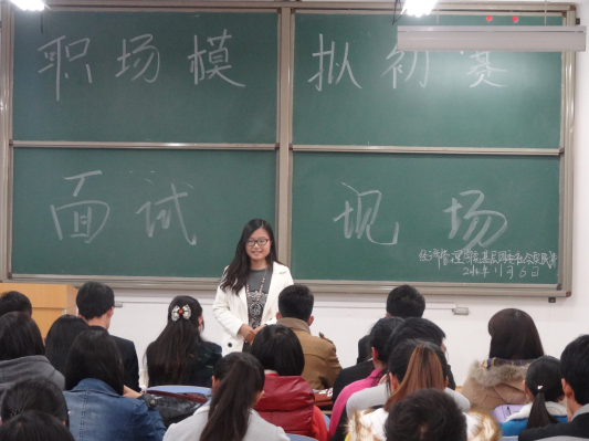 为了使广大学生提前感受职场面试氛围,锻炼学生的临场应变能力,加深学生对职场面试的了解,经济管理学院、学生会社会实践部于2014年11月6日中午在B-106教室举办了职场模拟初赛,出席大赛的评委有山东英才学院人力资源处王建云王老师、经济管理学院大学生艺术团团长兼经济管理学院学生会副主席李作恒、经济管理学院基层团委办公室主任陈孝树、经济管理学院基层团委社会实践部部长张顺成,并有乒羽协会会长徐铭作为特别嘉宾。