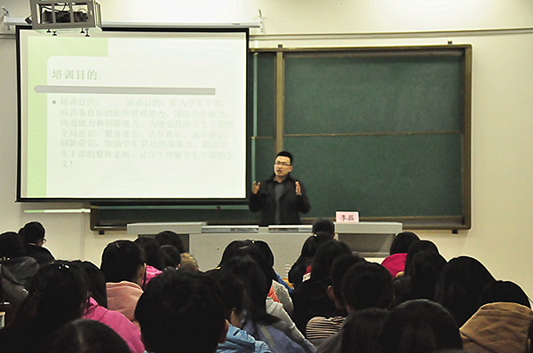 11月7日晚六点半,学前教育学院在实训教学楼6006教室召开2014级新生骨干培训第二讲,培训由2013级辅导员李磊主讲。