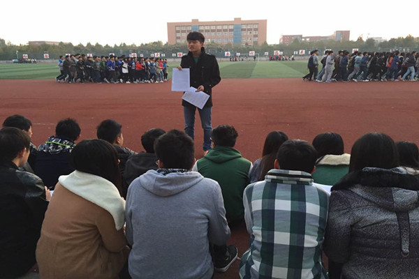 为了积极响应十八届四中全会会议的召开,积极学习关于十八届四中全会的相关精神。2014年11月4日,经济管理学院基层团委、学生会各部门部长、副部长在学生会主席齐放、学生会副主席李作恒、常务副主席李杨杨的领导下,在田径场进行了十八届四中全会会议精神的学习。