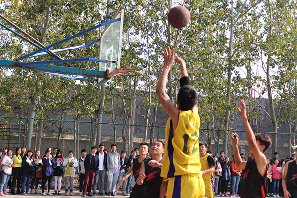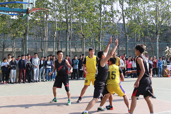 学校为了丰富广大同学的文体娱乐生活,充分发挥同学们的团队协作精神,增强同学们的凝聚力和自豪感,在山东英才学院南校区篮球场举行了“迎新杯”篮球比赛。随着时间推移,比赛已经进行到了半决赛,2014年11月4日,在篮球场上,商学院代表队和机械学制造及其自动化工程学院代表队展开半决赛的争夺
