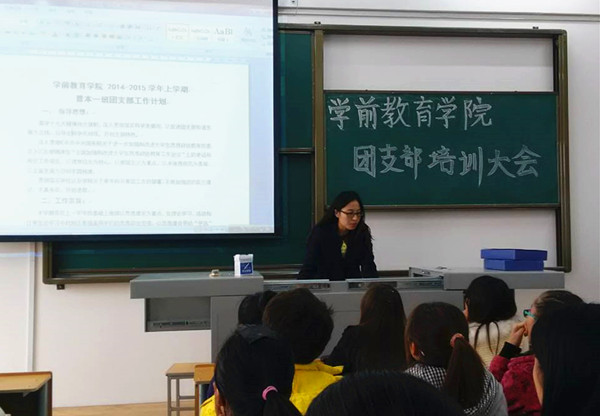 2014年11月5日中午,学前教育学院基层团委办公室举办了团支部培训大会,2014级全体团支部成员参会。此次培训大会的召开为了更好的进行班级档案的创新制作,凝聚班级的团结力。