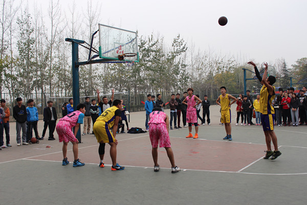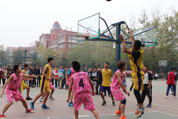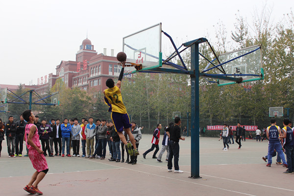 学校为了丰富广大同学的文体娱乐生活,充分发挥同学们的团队协作精神,增强同学们的凝聚力和自豪感,在山东英才学院南校区篮球场举行了“迎新杯”篮球比赛。随着时间推移,比赛已经进行到了决赛,2014年11月5日,在篮球场上,商学院代表队和经济管理学院代表队展开决赛的争夺。