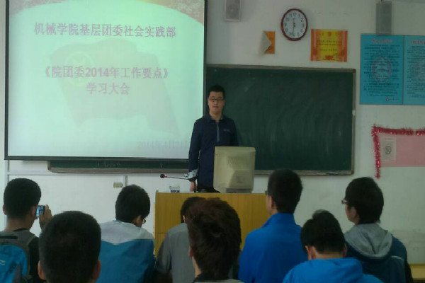 在本次学习大会中,副书记王继聪介绍了《院团委2014年工作要点》的内容,讲述了在今年我们的工作重点:一、以“我的中国梦”主题教育实践活动为统揽,深化提升思想引领工作;二、以综合素质和社会化技能提升为重点,大力开展素质拓展活动;三、以创新创业服务体系建设为突破,切实服务青年学生的现实需求;四、以规范建设和提升活力为关键,着力加强基层组织建设,创新工作机制。接着,他强调,广泛开展青年道德实践活动,推进青年马克思主义者培养工程。结合学院实际,完善青年马克思主义者培养格局,加强对基层的工作指导。
