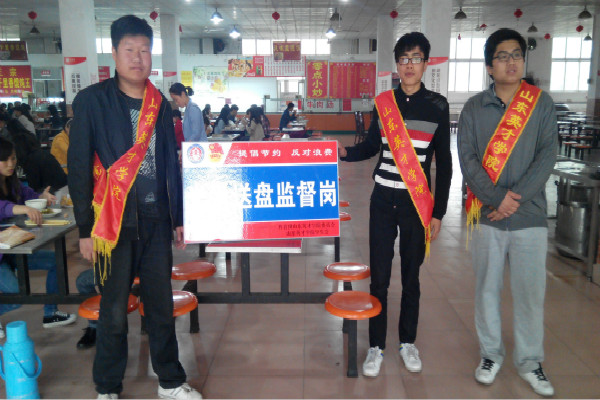 春风习习,时光甚好。为响应团委号召,鼓励全体同学继承和发扬节约粮食的传统美德,提高当代大学生的素质行为。机械学院学生会生活部部分干事在第一餐厅内举行“光盘送盘”活动,设立光盘送盘监督岗,干事们对食堂用餐同学进行提醒。