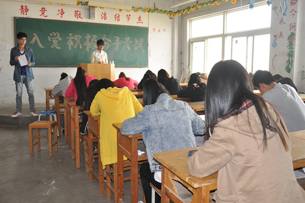 2014年4月13日中午十二点,学前教育学院入党积极分子培训结业测试在A楼五楼举行,基层团委学生会各部门的部长负责监考,学生会主席张丰、副主席盖敏敏在各考室巡考,各班各部门的入党积极分子按时参加本次考试。