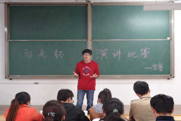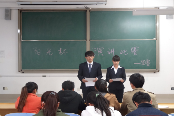 2014年10月29日,经济管理学院“阳光杯”演讲比赛复赛在B-404举行,参加本次活动的人员主要有通过初赛的各班级参赛代表,由学生会副主席、办公室办公室主任、科技创新部及学习部部长作为特邀评委嘉宾。