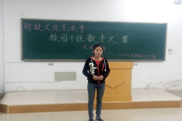 为迎接第六届科技文化艺术节的到来,提高文法学院学生的综合素质,活跃校园气氛,丰富课余生活,文法学院于2014年10月30日在图书馆402室举行歌手大赛的初赛。