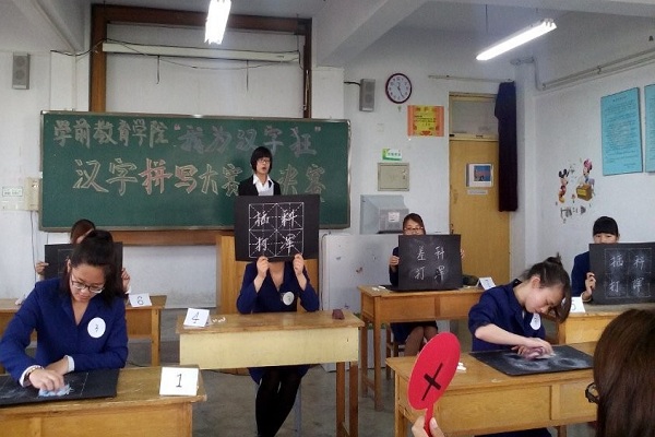 为弘扬中华汉字文化,丰富学院学生课后文化生活,学前教育学院基层团委科技创新部于2014年3月31日起举办了第一届“我为汉字狂”汉字拼写大赛。2014年4月14日星期一中午在教学A楼3001教室,第一届“我为汉字狂”汉字拼写大赛总决赛的顺利结束为此次汉字拼写大赛画上了一个圆满的句号。辅导员林欢欢老师作为嘉宾到场观看。学生会主席张丰,基层团委副书记王军,基层团委常委副书记盖敏敏担任了本次决赛评委。进入决赛的班级参赛选手及其科技创新部部员积极备战后准时到位。