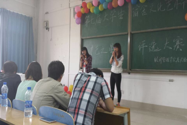 为进一步推进大学生寝室文明建设,营造温馨舒适的寝室环境。经济管理学院基层团委、学生会文艺部于2014年4月14日中午在教学楼B-302教室开展了宿舍文化节“才艺之星”评比活动。本次活动特邀评委和嘉宾分别有经济管理学院基层团委、学生会副主席李作恒、大学生艺术团副团长陈阳、科技创新部部长李杨杨、学习部部长陈永俊、文艺部部长杨晶莉等。