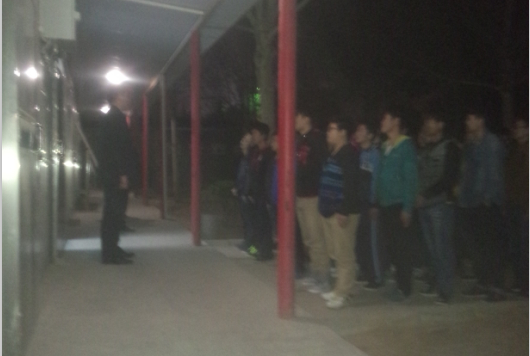 随着刘院长的一声令下,演习活动正式开始!同学们迅速的打开了前后门,自觉分成两路,由前后门逃离火灾现场。大家俯身并做出捂口鼻的动作,寻找安全出口,井然有序的迅速逃离现场。最后在学院办公区域集合完毕,并迅速清点人数。