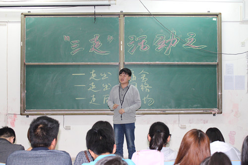 山东英才学院商学院“三走活动”系列之走出网络活动于2014年4月16日下午16时30分正式开始,活动由商学院生活部部长李帅帅主持演讲,各部门部长及部员参加,大会于综教楼北楼4010进行活动的开始仪式。