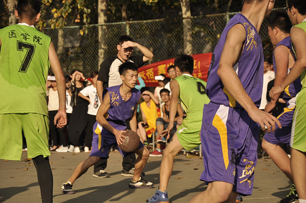 10月24日14:30,学前教育学院参加了在篮球场举行,由山东英才学院主办的第十三届“迎新杯”篮球赛。这是学前教育学院参加的第三场比赛,是学生男篮参加的第一场比赛,赛前大家都充满信心。本次比赛是学前男篮对阵医学院男篮,学前身着紫色球衣,医学院为绿色球衣。