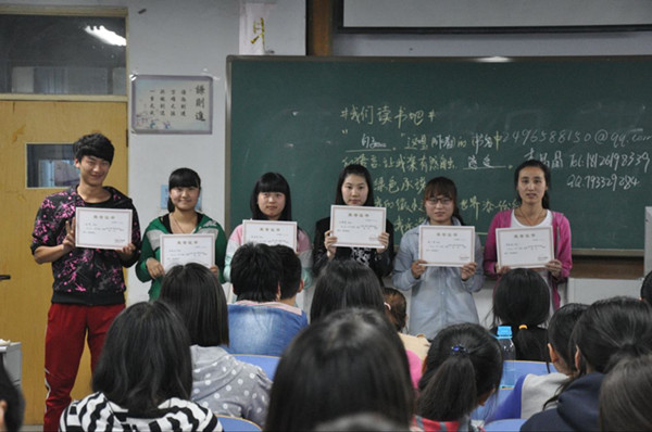 2014年4月22日晚,学前教育学院德育故事讲述比赛赛后颁奖仪式在A教学楼5001教室隆重举行,学前教育学院学生会主席张丰为获奖同学颁发荣誉证书。基层团委学生会各部门部长出席本次颁奖仪式。