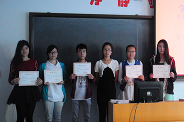 4月25日中午在A教学楼3004教室,学前教育学院举行了第五届科技文化艺术节“梦想蒲公英杯”演讲比赛颁奖仪式。其中获一二三等奖的同学们都聚集在此,基层团委常务副书记盖敏敏出席颁奖仪式为获奖同学颁奖。