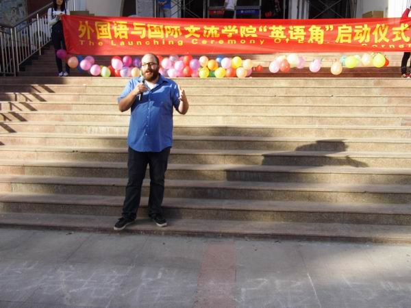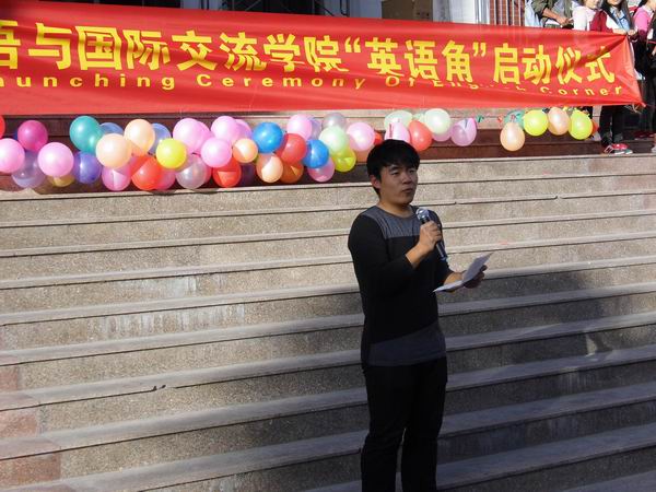 10月17日,由外国语与国际交流学院学生会英语部组织的英语角启动仪式在大学生活动中心广场隆重举行。外国语与国际交流学院院长张维娜、副院长林春玲、张艳芳、孙志峰,外教josh、David及来自各个班级的学生代表共同共同参加了启动仪式。