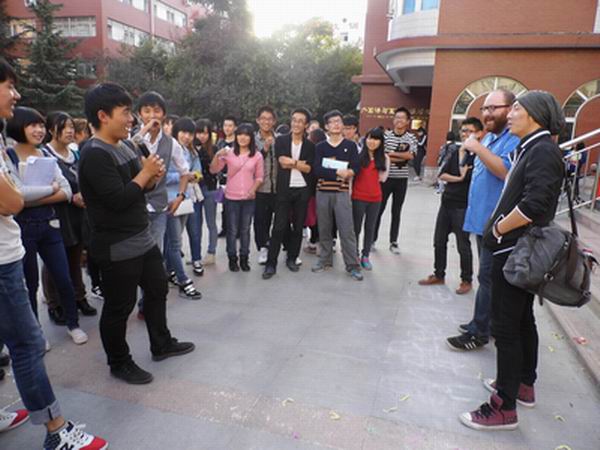 启动仪式结束后,第一次英语角活动正式开始,2位外教与同学们进行了亲切的交谈,同学们诙谐幽默的对白博得了阵阵掌声,不仅展现了英语风采,而且提高了同学们的英语口语水平。