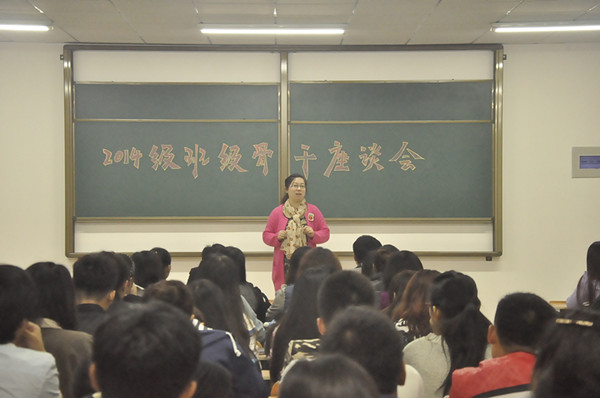 接着她举出由于散播谣言造成不良影响的事例,也让同学们懂得了一条法律法规,即以讹传讹的,转发传言的超过500人的有刑事责任。学生干部有事找辅导员了解清楚,杜绝乱猜乱传,做学生们的思想工作,流言定止于智者。其次要学会吸收,懂得应该做些什么,凡事交代清楚。管理班级要灵活,要创新,勇于踏出第一步,勿一汪死水,机械性的管理。还要做到有方向,在路上,也就是说有目标,在行动。要把握技巧,能让班级同学们配合工作,第一可以组织一些喜闻乐见的学生行动,第二切实为班级同学谋福利。最后的也是非常重要的就是要学会排毒,做人要有大智慧,遣散不良行为,大智若愚是人生的大哲学,要学会沟通,还要以身作则,明白真善美,假恶丑,要有起码的是非观。学生干部要突出理想信念教育,用坚定的理想信念铸就金刚不坏之身,在大是大非面前,能够真正的旗帜鲜明、爱憎分明,在关键的时候能够靠得住,能够顶得住,能够使学院领导老师放心,广大学生满意。