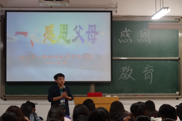 人之所以前行,在于感恩。2014年4月24日13:30,经济管理学院2013级普本财务管理专业于教学楼B-406教室举行了感恩教育活动。财务管理三个班全体成员参加本次活动。张腾老师担任主讲。