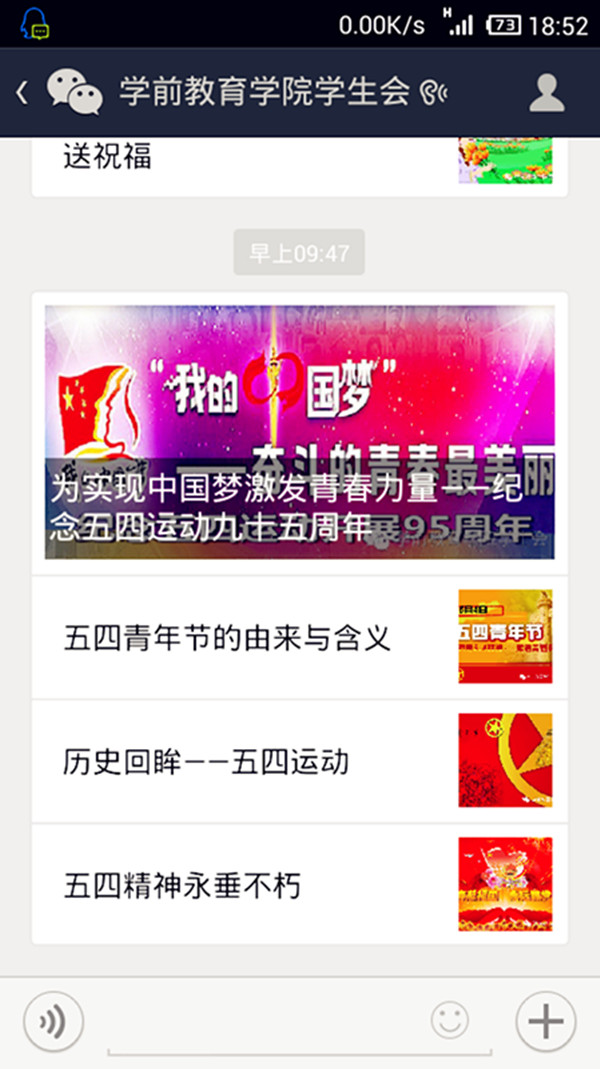 学前教育学院学生会微信公众平台发布五四青年节专刊