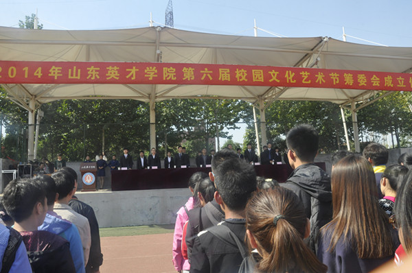 为进一步丰富校园艺术活动,增添校园艺术氛围,由共青团山东英才学院委员会和山东英才学院学生会联合举办的“山东英才学院第六届校园科技文化艺术节筹委会成立仪式”活动于2014年10月14日中午12时在田径场举行。