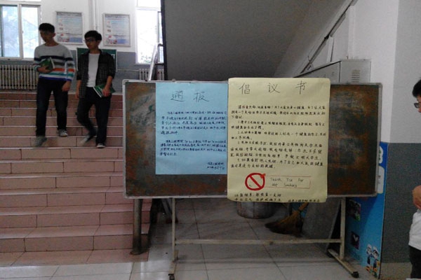 为了响应世界卫生组织发起的世界无烟日和学校对于吸烟的相关管理规定,信息工程学院学生会于2014年5月13日在7号宿舍楼和教学楼B楼进行了禁烟宣传活动,动员大家积极行动起来参与禁烟队伍中。