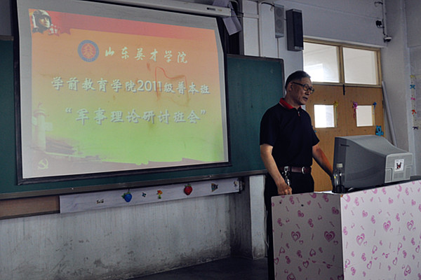 2014年6月5日下午5点,学前教育学院在A-4002召开了学前教育学院2011级本科班军事理论研讨班会,山东英才学院刘善水政委主持了本次会议。