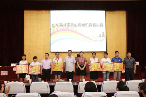 为推进我校心理健康教育工作的开展,提高广大师生的心理健康意识,营造和谐的校园氛围,2014年6月27日,山东英才学院于南校区学术报告厅举办了“2014年心理知识竞赛决赛暨‘成长陪伴 心灵护航’心理健康节颁奖典礼”。副院长李崇银教授,学工部(处)龙新良部长、李寿杰副部长、韩芳丽副部长,机械学院孔祥泉副院长,医学院郭传祯副院长等领导作为观赛嘉宾出席了本次活动。我院辅导员侯天卉老师及两名学生作为商学院“汇英”代表队参加了心理知识竞赛决赛,并勇夺冠军。
