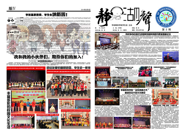 2014年8月21日,学前教育学院学生会“静听湖声”团学活动报第二期正式刊印发行。