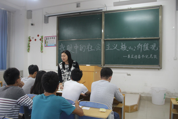 为弘扬当代大学生践行社会主义核心价值观,2014年9月20日下午,文法学院基层团委吴艳书记在A-301教室召开了以“我眼中的社会主义核心价值观”为主题的恳谈会。