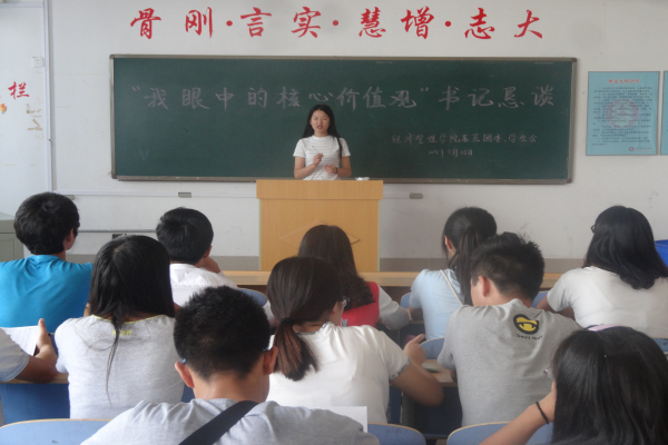 为了进一步发挥团学干部“服务成长,引领思想”的模范带头作用,鼓动经管学子树立正确的世界观、人生观、价值观,遵守社会道德法规。经济管理学院于2014年9月25日中午在教学楼507开展“我眼中的社会主义核心价值观”为主题的书记恳谈会,与会人员主要有经济管理学院基层团委书记赵昆、组织部部长高鑫元、策划室主任付鹏以及12级、13级、14级各班团支书,本次恳谈会议由赵昆书记主讲。