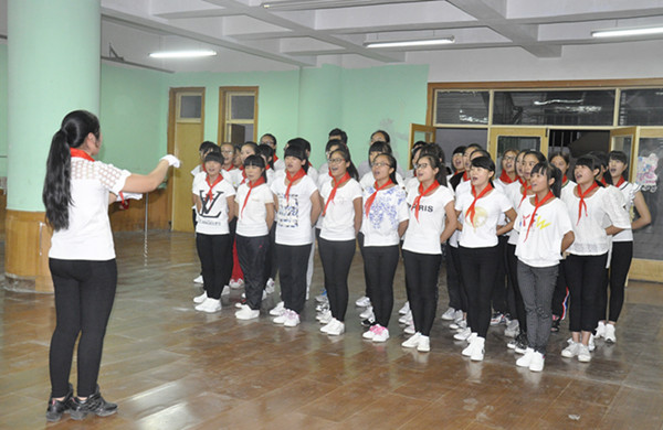 学生佩戴红领巾《歌唱祖国》