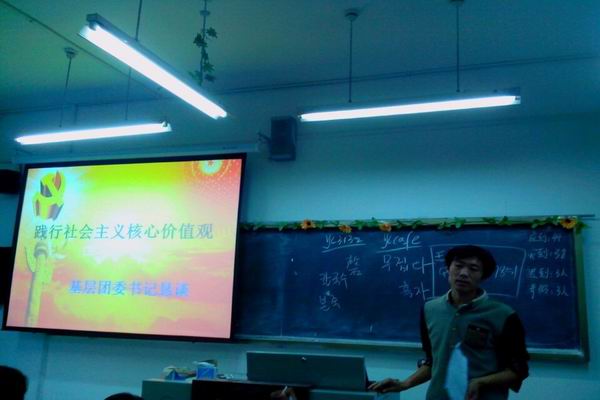 根据中共中央办公厅印发《关于培育和践行社会主义核心价值观的意见》文件精神,为认真贯彻习近平总书记系列讲话精神,切实抓好该文件精神的落实,努力构建和谐平安校园,强化广大团员青年的思想意识,大力推进外语学子的社会主义核心价值观培育工作。2014年9月16日,外国语与国际交流学院在D―3005室举行“践行社会主义核心价值观”基层团委书记恳谈活动。外国语与国际交流学院基层团委、学生会各部负责人及2013、2014级团支书和班级宣传委员参加恳谈恳谈活动。外国语与国际交流学院基层团委书记祝景朋主恳谈活动。