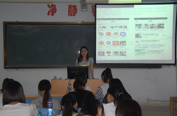 2014年9月11日下午4点30,学前教育学院学习部在A楼5002教室开展微博管理员培训工作。参加本次培训的成员为14级各班微博管理员以及学习委员。学前教育学院学生会学习部负责人谢小娇主持了本次培训。