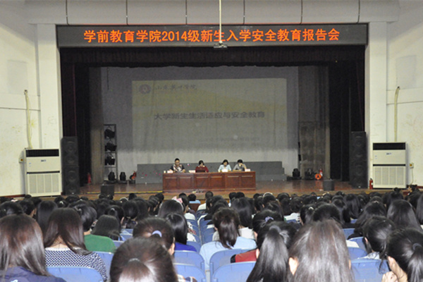 为了进一步加强学生的安全教育,9月12日下午两点半,由学前教育学院学生会组织的安全教育报告会在大学生活动中心召开。参加本次活动的有学前教育学院行政院长郑雯,基层团委书记王坤丽,行政秘书曹鹏、沈汉斌老师,辅导员老师及2014级全体新生。本次安全教育报告会的主讲人是郑雯院长。