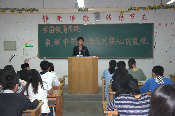 会上,副主席范江涵着中强调了两点,第一是什么是社会主义核心价值观,第二是如何做好班长和团支书。他在在会上具体地为同学们阐释了什么是社会主义核心价值观,它指的是富强、民主、文明、和谐、自由、平等、公正、法制、爱国、敬业、诚信、友善。他也引用习近平总书记在北京大学演讲时提出的四个词语勤学、修德、明辨、笃实,告诉同学们如何树立正确的社会主义核心价值观。范江涵副主席用自己的亲身经历告诉班长、团支书如何去管理好班级,如何做一个好班委。身为班委肯定会比别人吃更多的苦,但是在其位谋其职,要有不怕吃苦的毅力与恒心,要有灵活应对班内突发事件的能力。他的讲话结束后,学生会各部门依次就上周各班常规工作的情况做了一下总结,提出各班所存在的问题,督促各班班委及时改正。
