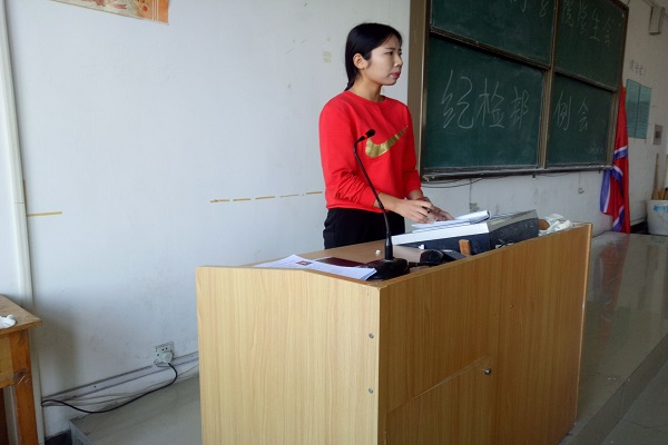会议伊始,各组组长对本周工作进行汇报。接着,大二优秀干事慈亚红对本周工作问题进行总结,并提出建议和相应的解决措施。部门的常规工作必须贯彻执行,认真负责。同时她强调:查早餐时,各个站岗处必须合理安排人员,做到既不影响部员上课学习,又能够顺利工作;对于校园文明执勤,部员在日常生活中要尽职尽责,将所见之事拍照发给队长,及时说明各学院的情况。在这个金秋十月,山东英才学院迎来了“校园科技艺术节”。本次节日将举办舞蹈大赛、辩论赛、书法展等各种各样的活动来丰富山东英才学院学生们的课余生活,激发学生潜能,展现学生魅力。大二干事们鼓励大一部员积极参与,部员们热情高涨,踊跃报名。最后,由校学生会纪检部部长潘涛发言:山东英才学院学生会在今年进行改革,将以学生会为中心,深入贯彻全心全意为广大师生服务的宗旨。部长潘涛希望部员能够积极参加校园各项活动,充分锻炼自己,还应灵活处理问题,精神饱满,活力四射。