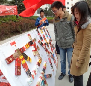 活动开始,全体人员布置好活动场地后,开始进行“禁烟”活动的宣传,通过横幅、展板、签名、宣传单、现场演讲等形式开展禁烟活动,讲述吸烟对人体、社会及环境的危害性,组织学生进行签名活动。过往的学生都纷纷在禁烟条幅上签下自己的名字,尤其是在签名活动中,王东生副书记和团委老师的到来,更加激起了同学们对禁烟签名活动的热情。过往的辅导员老师们也纷纷参与到此次禁烟签名活动中,纷纷表示对本次活动的大力支持。历时两个小时的禁烟签名活动在铿锵有力的校歌声中圆满落幕。