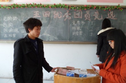 竞选开始,吴文龙对干事们的积极参与和按时赴会表示衷心的感谢,并向大家宣读了《共青团山东英才学院委员会文件(鲁英才团字【2013】5号)》,他说过去的一年,从共青团工作特点出发,学院在团的自身建设、校园文化活动、社会实践等方面均取得了可喜可贺的成绩;学院团委决定评选、表彰一批先进集体和个人;校学生会宣传部将竞选出2名“五四”优秀团员。随后,干事们经过慎重考虑投上了自己的一票。秉承公平、公正、公开的原则,活动进行了现场倡票。最终,陈瑜、陈敏分别获得了“五四”优秀团员的推荐资格。史璐璐总结时说,“五四优秀团员”这个光荣的称号,不仅仅只是注重成绩与奖项,还注重部门的团结、凝聚力与影响力;一个部门若有无坚不摧的凝聚力,相信在往后的日子里,定会慢慢沉淀出许许多多的骄人成绩,会闪现更多的优秀团员;优秀团员的称号对大家是一种动力,一种鼓舞,在未来的路上大家应更坚定地走下去,为学院的建设与发展做更多的贡献。