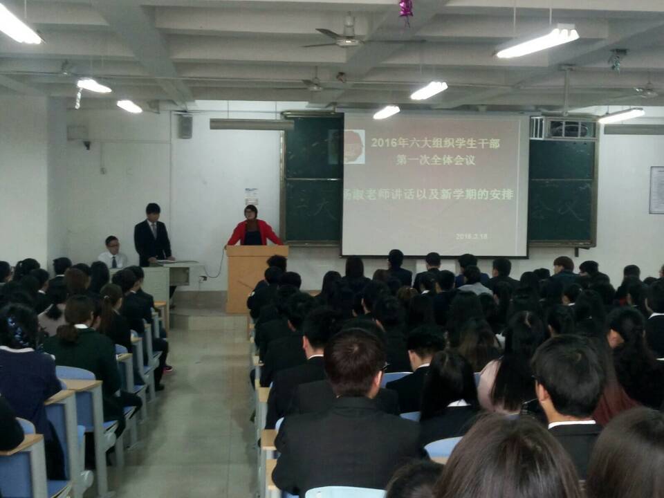 新学期伊始,伴随着微风,山东英才学院北校区2016年六大组织学生干部第一次全体会议于2016年3月18日中午11:50分在经济与管理学院100室召开。出席本次会议的有校团委指导老师杨淑老师和六大组织的各个负责人,六大组织的部分学生干部也参与了本次会议。