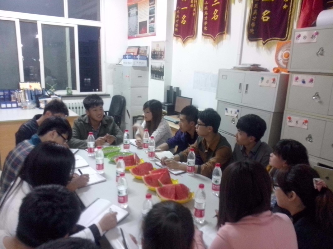 会中,商学院学院学生会主席张艳艳对商学院学生会前一段时间的工作做了总结,并对校园科技文化艺术节工作做了经验分享。由于商学院南北校区的分割,她提出了因人而异、感情管理的管理模式,同时,对于学生会人员流失这方面的问题也提出了自己的一套管理方式。她认为:一、在部门管理方面,各部门之间可以通过小游戏、茶话会、恳谈会等各种活动,拉近学生会各部门之间的距离,加深部门之间的感情,使得各项工作得以顺利展开;二、学生会各部门之间也是一个团队,团结就是力量。张艳艳同学还特别提出要感谢她南校区大二的副主席、部长们,以及北校区自力更生的大一学生干部们,是他们难得可贵的务实精神给了她无穷的干劲和坚强后盾;三、同时她也提出由于南北校区的分隔使得大一部员在文件档案管理方面存在欠缺,希望可以得到校学生会这边的支持。于明洋表示只要商学院学生会需要校学生会帮忙,校学生会当尽全力支持工作,各级学生会应该“一家亲”,大家互帮互助、相互扶持,才能使学生会工作方面走得更稳更长远;充分发挥学生干部的博爱精神,更好地服务学院领导、同学。